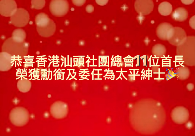 喜報!恭喜11位香港汕頭社團總會首長及潮汕鄉賢榮獲勳銜及獲委任為太平紳士