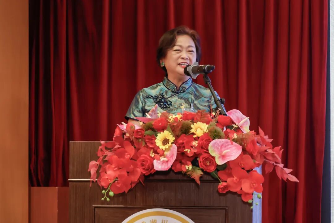 高佩璇主席致歡迎辭,衷心感謝陳茂波司長在百忙中撥冗蒞臨,並對各位獲授勳及榮任慈善團體要職的鄉彥表示熱烈祝賀。她指出,陳茂波司長乃潮籍碩彥,多年來一直關心和支持商會會務發展,是潮籍社群的驕傲。高會長表示,陳司長出任財政司司長以來,以務實穩健的理財哲學,推動多項具前瞻性的財經政策,致力維護香港財經大局穩定,並積極推動經濟復甦,鞏固香港國際金融中心地位,成效顯著。高佩璇主席特別感謝北京、深圳等地潮商領袖遠道而來,對本會的鼎力支持和鼓勵,充分展現了潮州人四海一家的情懷,以及對香港未來的共同期待。