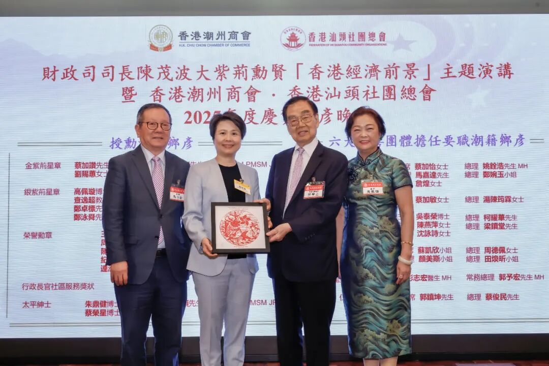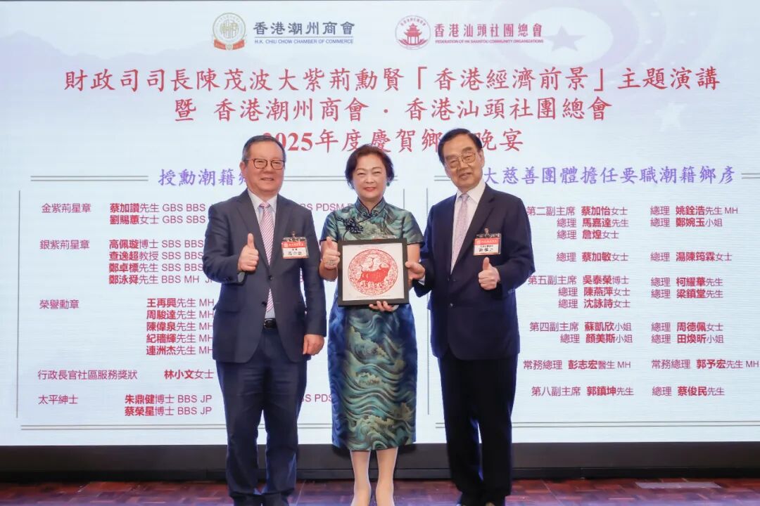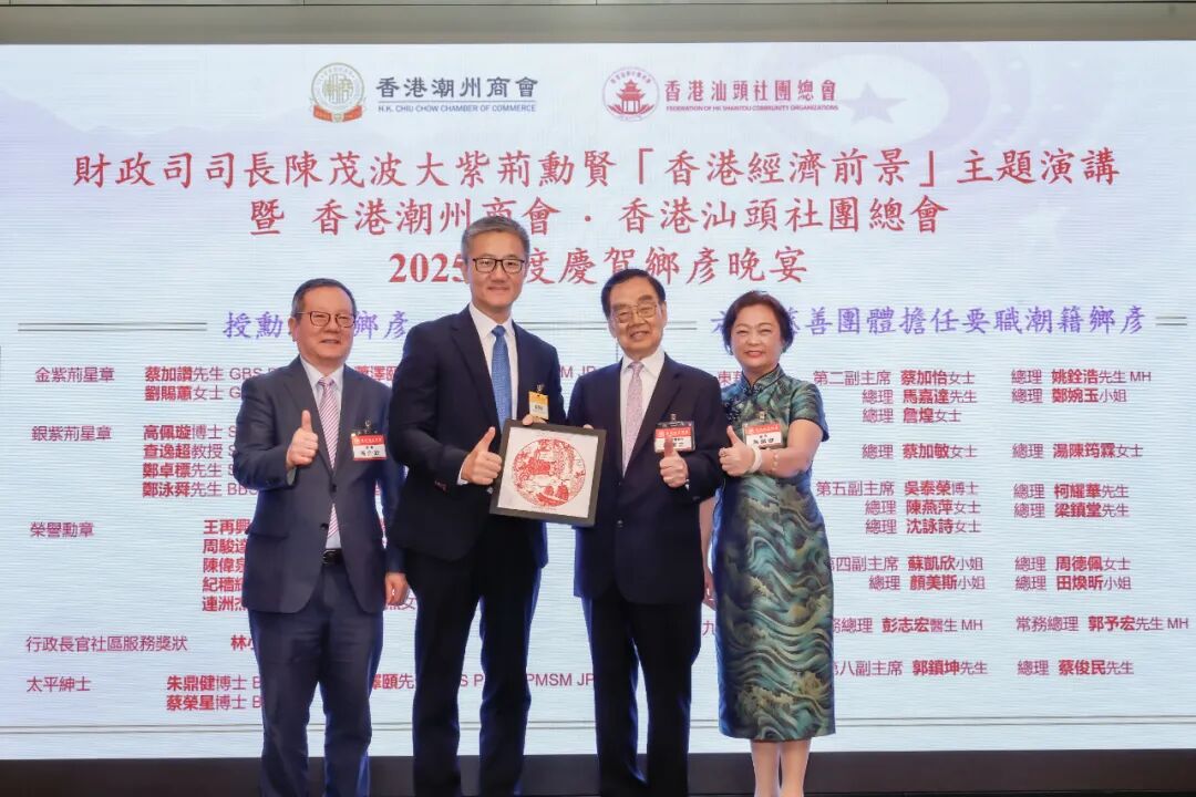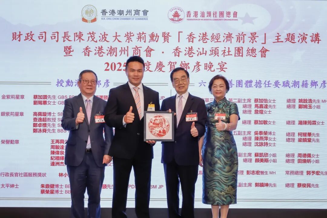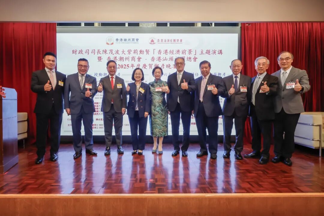 10月10日,香港汕頭社團總會與香港潮州商會聯合舉辦財政司司長陳茂波「香港經濟前景」主題演講暨2025年度慶賀鄉彥晚宴