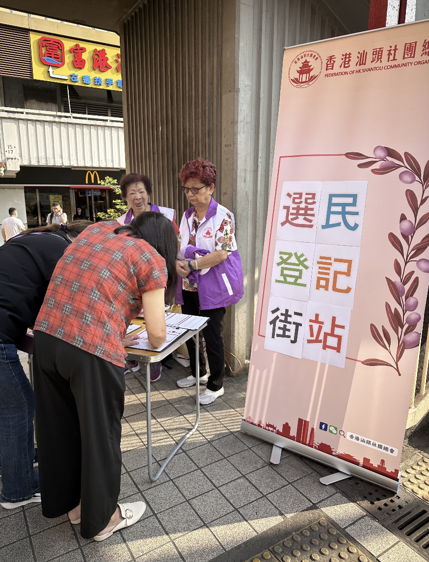 汕總及青年委員會開選民登記街站 2025年06月24日 今年12月7日將舉行立法會換屆選舉,身在香港,公民理應履行責任,登記做選民。 香港汕頭社團總會及總會青年委員會4月30日來到坪石邨開街站,副監事長李映洲,常務副主席連洲杰,副主席魏凱榮,區議員馮韻斯為坪石邨的街坊做選民登記。 上一篇 下一篇 返回列表