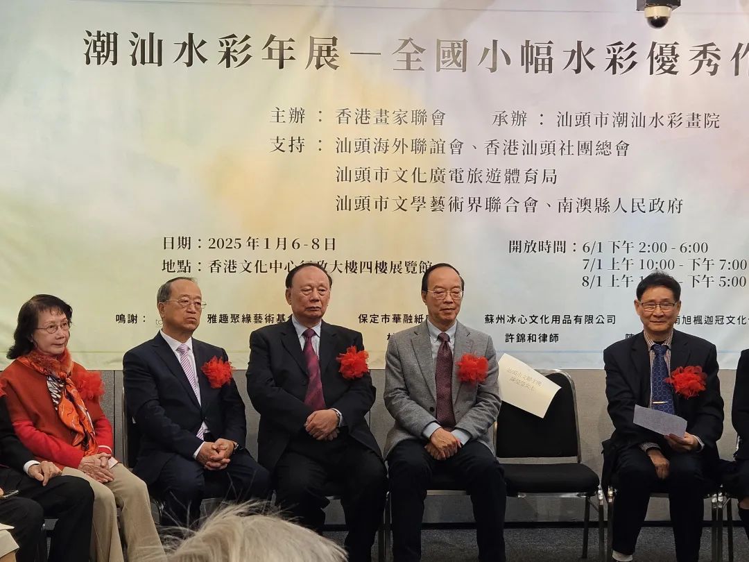 由香港畫家聯會主辦,香港汕頭社團總會支持的「潮汕水彩年展——全國小幅水彩優秀作品展」本周在香港文化中心舉行。香港汕頭社團總會吳哲歆副監事長,內務主席陳鑑林院士為開幕式剪彩,多位會董前來觀展,希望「潮汕水彩」可以進一步發揚和傳承。