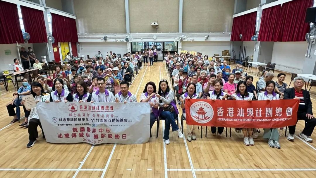 2025年9月27日,香港汕頭社團總會婦女委員會與青年委員會合辦,姚逸華議員辦事處及竹園邨互助協進會協辦,香港新中醫學院、國際藥膳食療學會、黃大仙地區康健中心及香港聖公會福利協會全力支持,共同舉辦「賀國慶迎中秋 汕總傳愛心 義診服務日」活動,為黃大仙區的基層獨居長者和雙老家庭送上關懷與健康支持。
